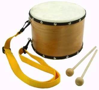 Double-headed non-tunable calf skin drum. (Remember, since the heads of this drum are not tunable each head will have a different pitch.) 8" diameter x 6.25" high.
